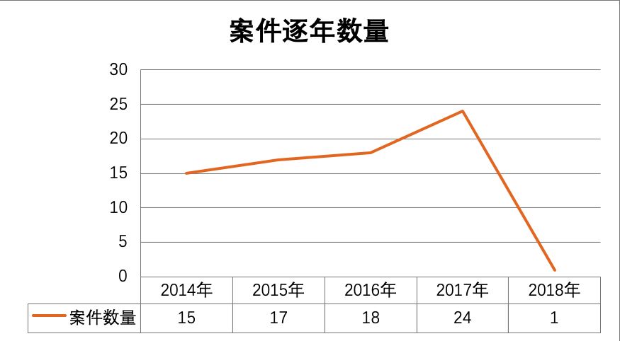 其中2014,15篇;2015,17篇;2016,18篇;2017,24篇,2018,1篇,基本呈每年递增趋势。(2018年只统计至4月份)。